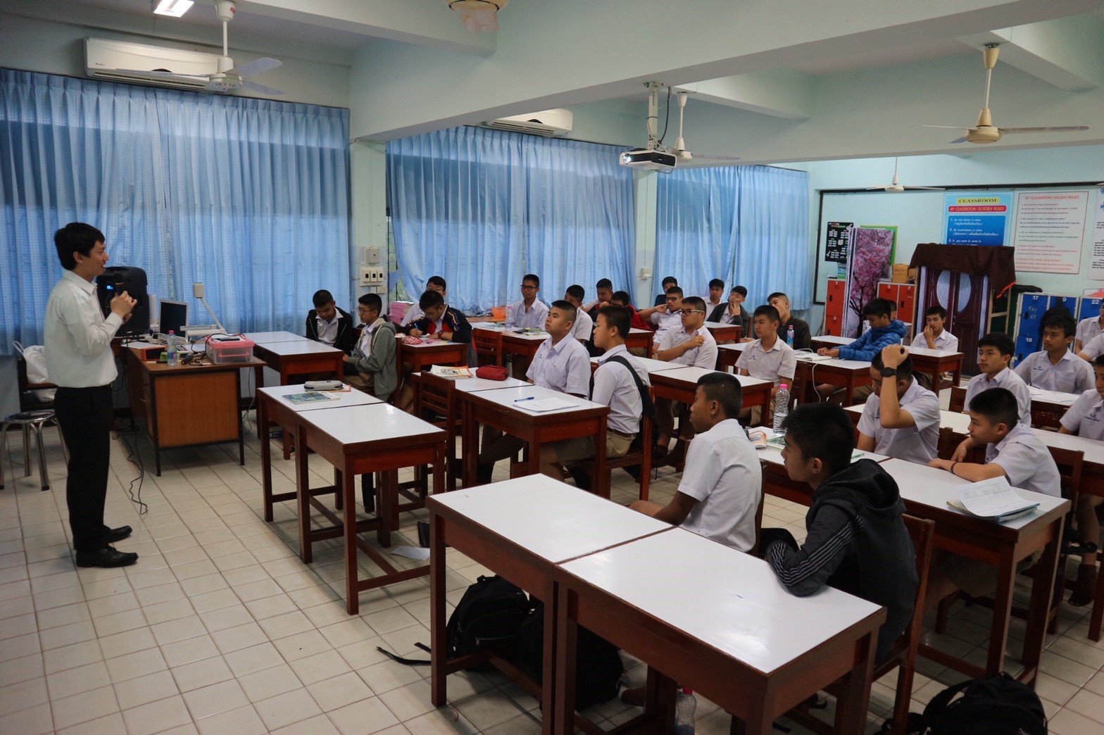 ต้องขอขอบคุณท่านรองผู้อำนวยการ ฝ่ายวิชาการ อาจารย์นภาพร ที่ให้โอกาสผมไปพูดคุยกับน้องๆชั้น ม.3 น้องๆมาฟังแต่เช้า เป็นคาบแรกของวัน แต่ก็ให้ความร่วมมือและตั้งใจฟังกันมาก