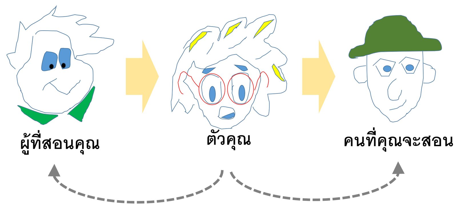 โดยถ้าน้องๆนักเรียนตระหนักอยู่เสมอว่าจะต้องเอาเนื้อหาที่กำลังเรียนอยู่นั้นไปสอนต่อให้ได้ ก็จะทำให้น้องๆ ตั้งใจฟังมากขึ้นในเวลาเรียน